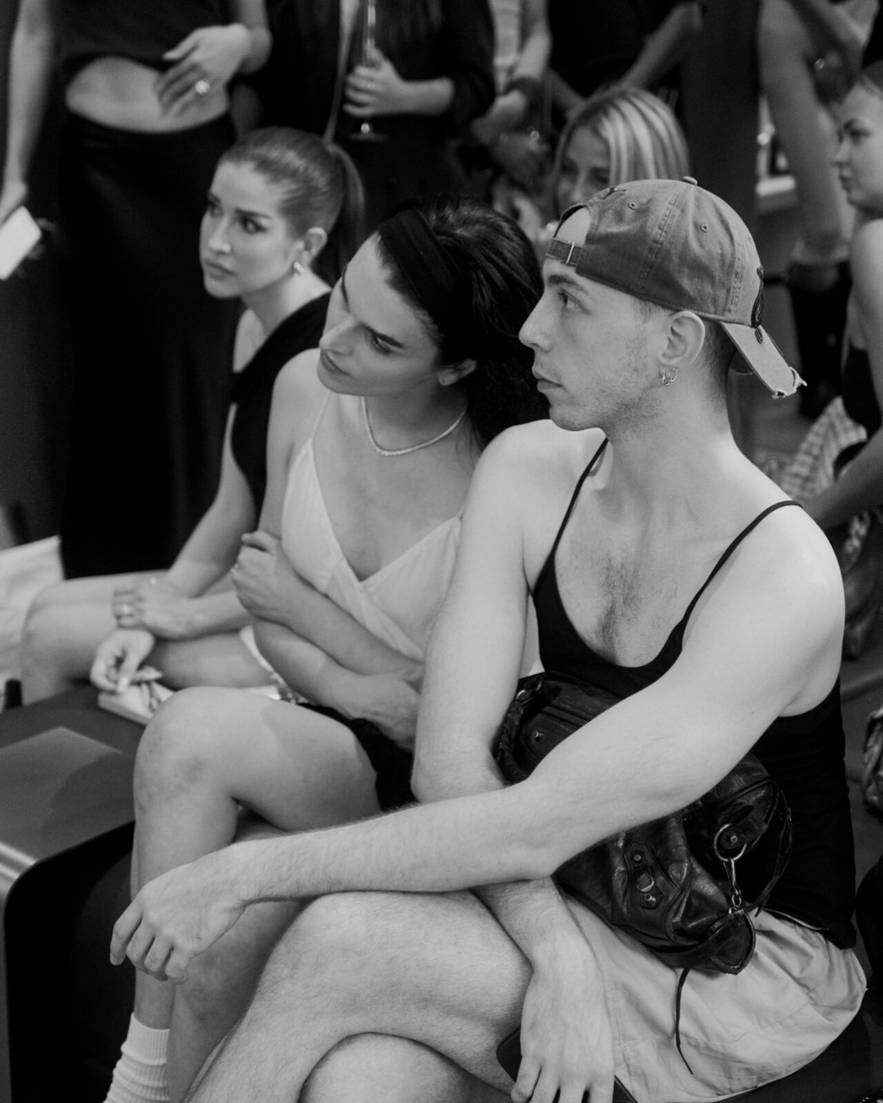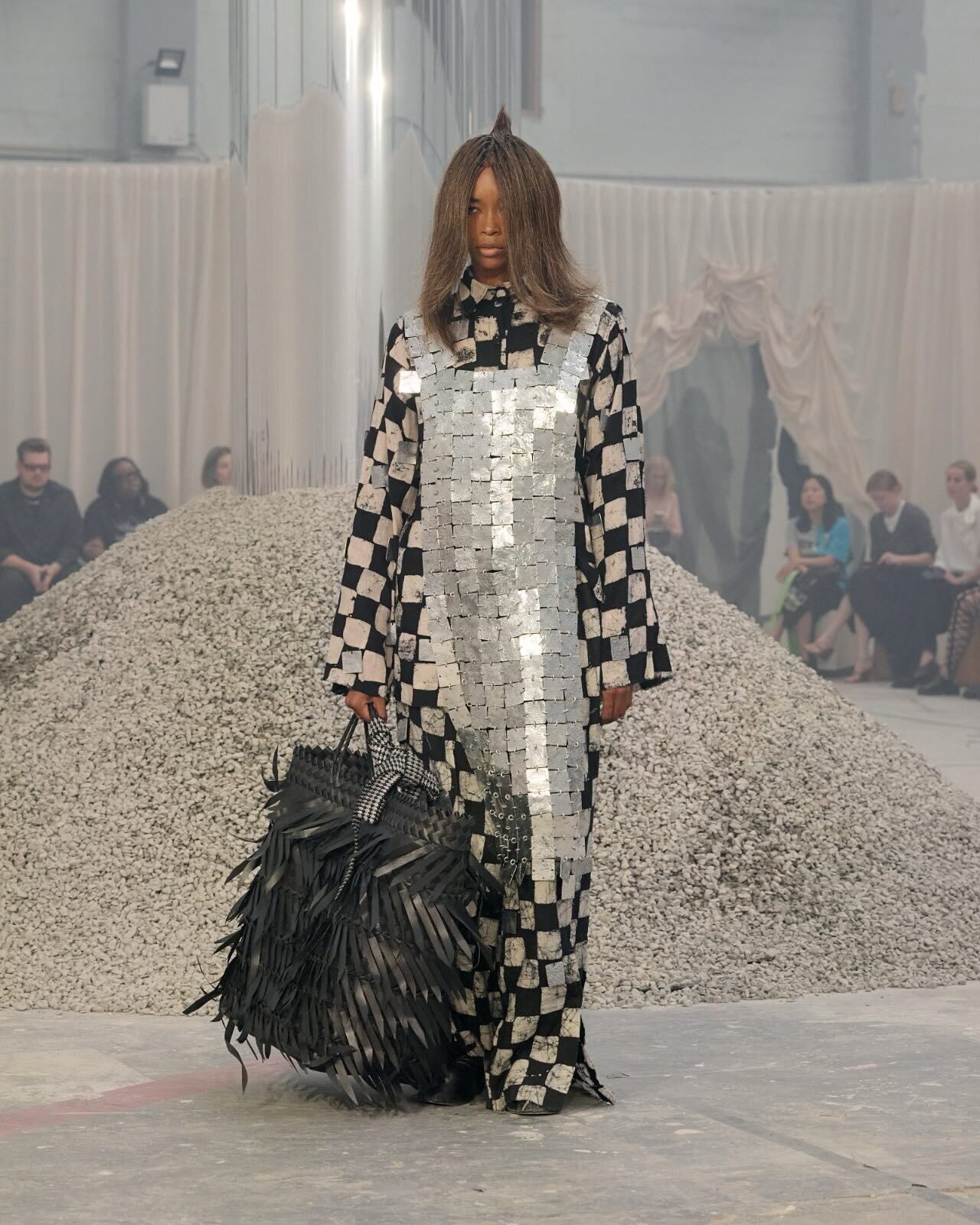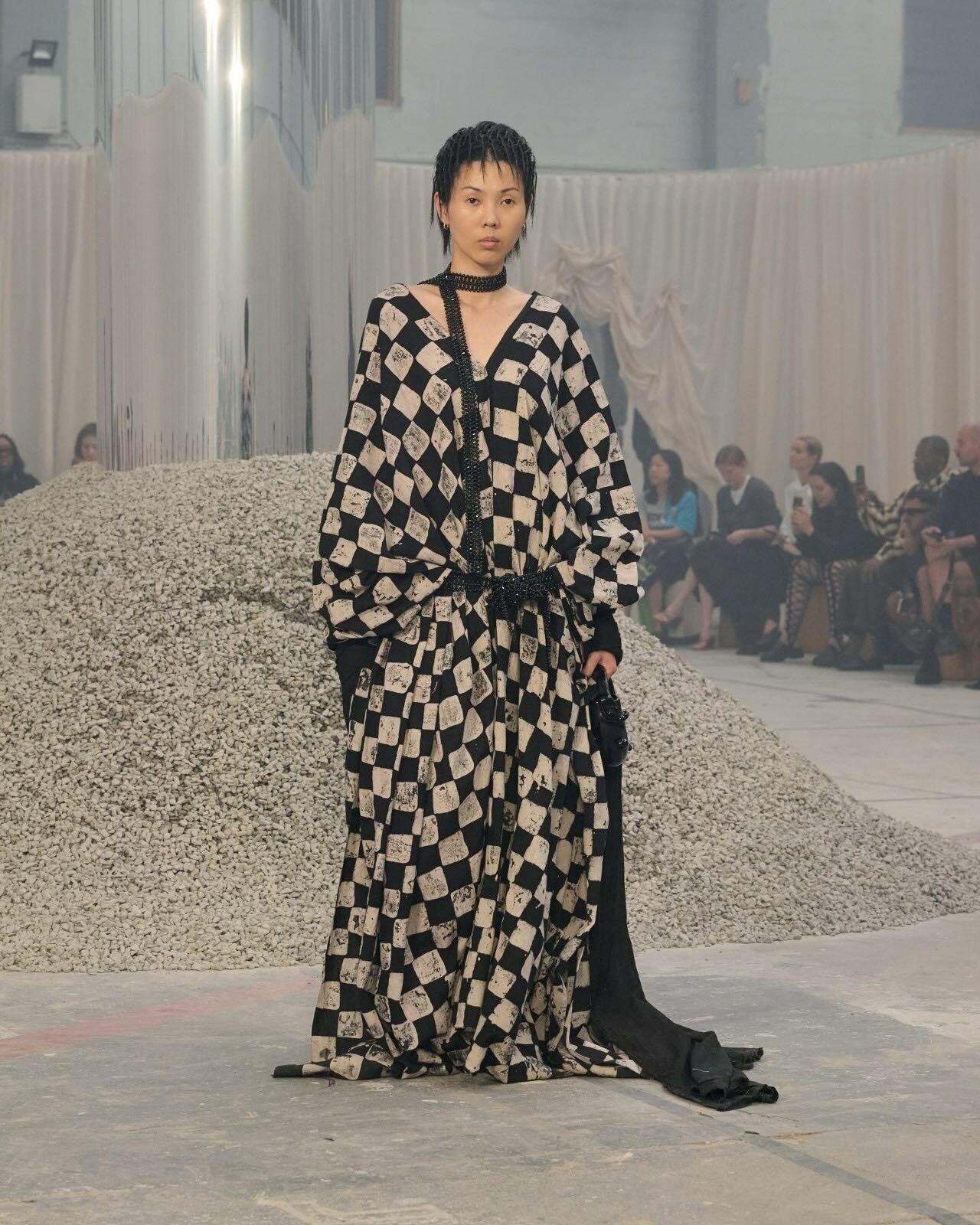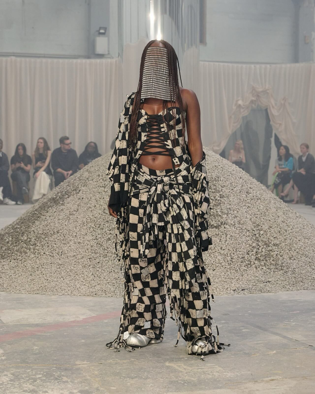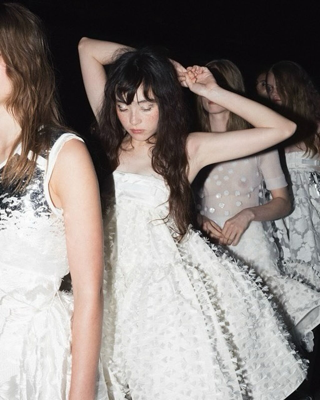 “Hana-Bi” @ceciliebahnsen 10-Year Anniversary Show, Presented at Copenhagen Fashion Week. Al models wear existing white @asics_sportstyle, reworked with embroidery, foil, or deconstructed linings. A