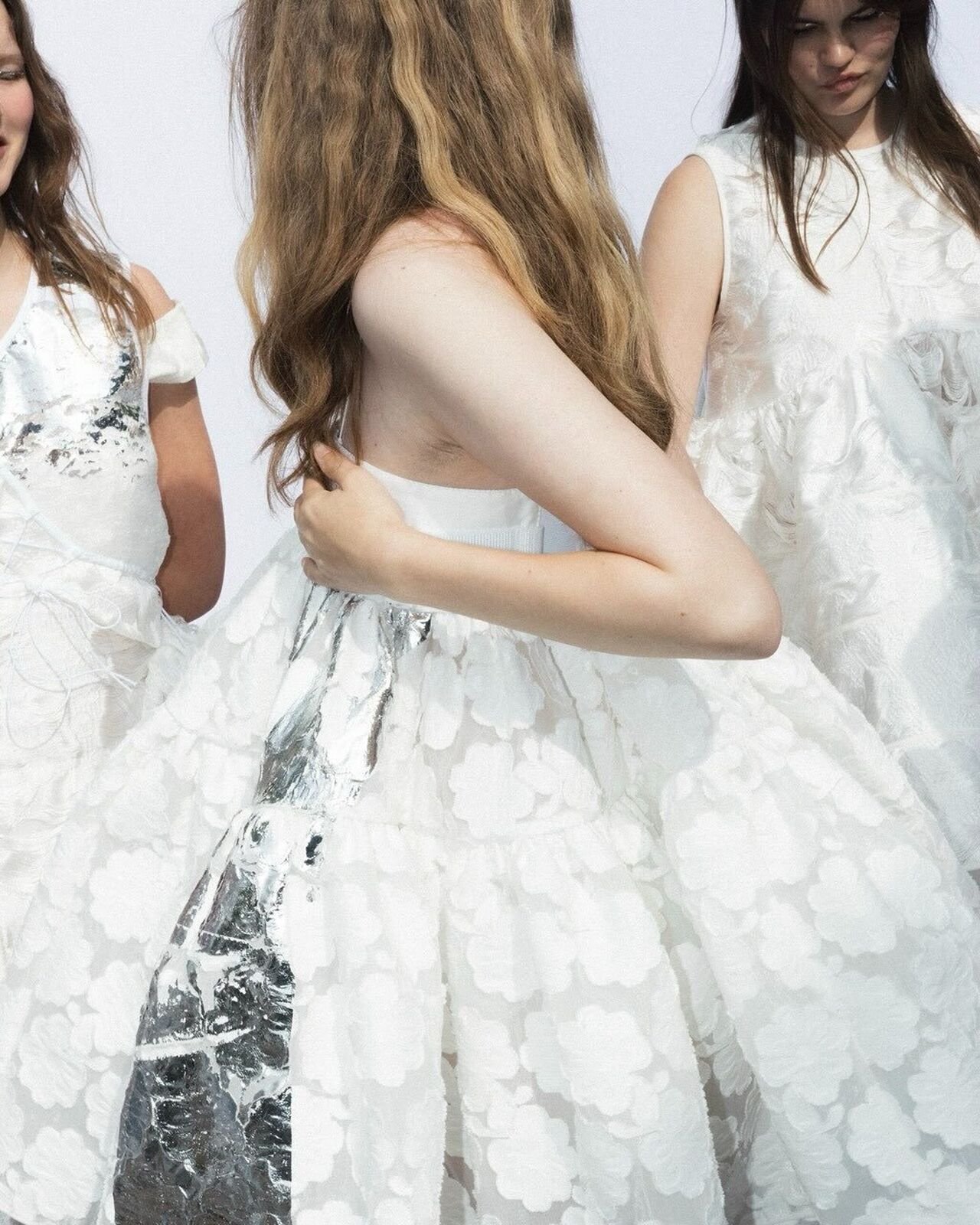 “Hana-Bi” @ceciliebahnsen 10-Year Anniversary Show, Presented at Copenhagen Fashion Week. All models wear existing white @asics_sportstyle, reworked with embroidery, foil, or deconstructed linings. A